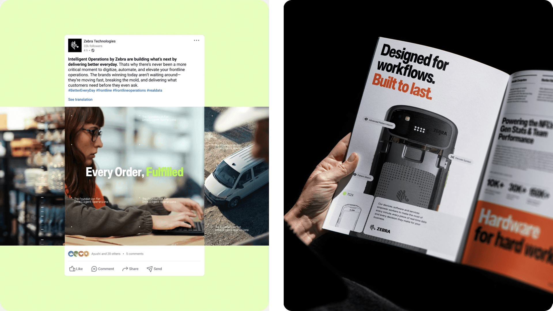 The work propelled Zebra into a new era with purpose, a modern identity, and a brand platform that differentiates them, helping align global teams, elevate perception, and lead the conversation around intelligent frontline operations.